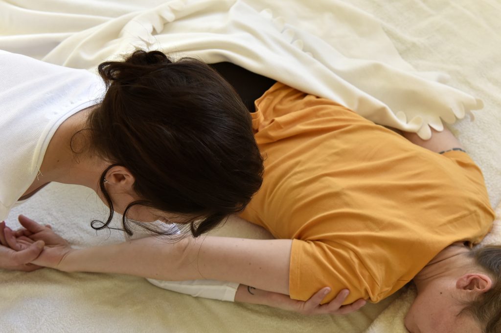 Auf einer Matte am Boden und in bequemer Kleidung gearbeitet, löst Shiatsu Blockaden im Körper, unterstützt den Energiefluss entlang der Meridiane und fördert die Regeneration von Körper, Geist und Nervensystem.